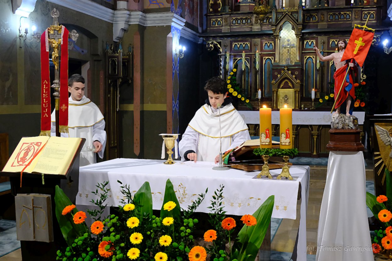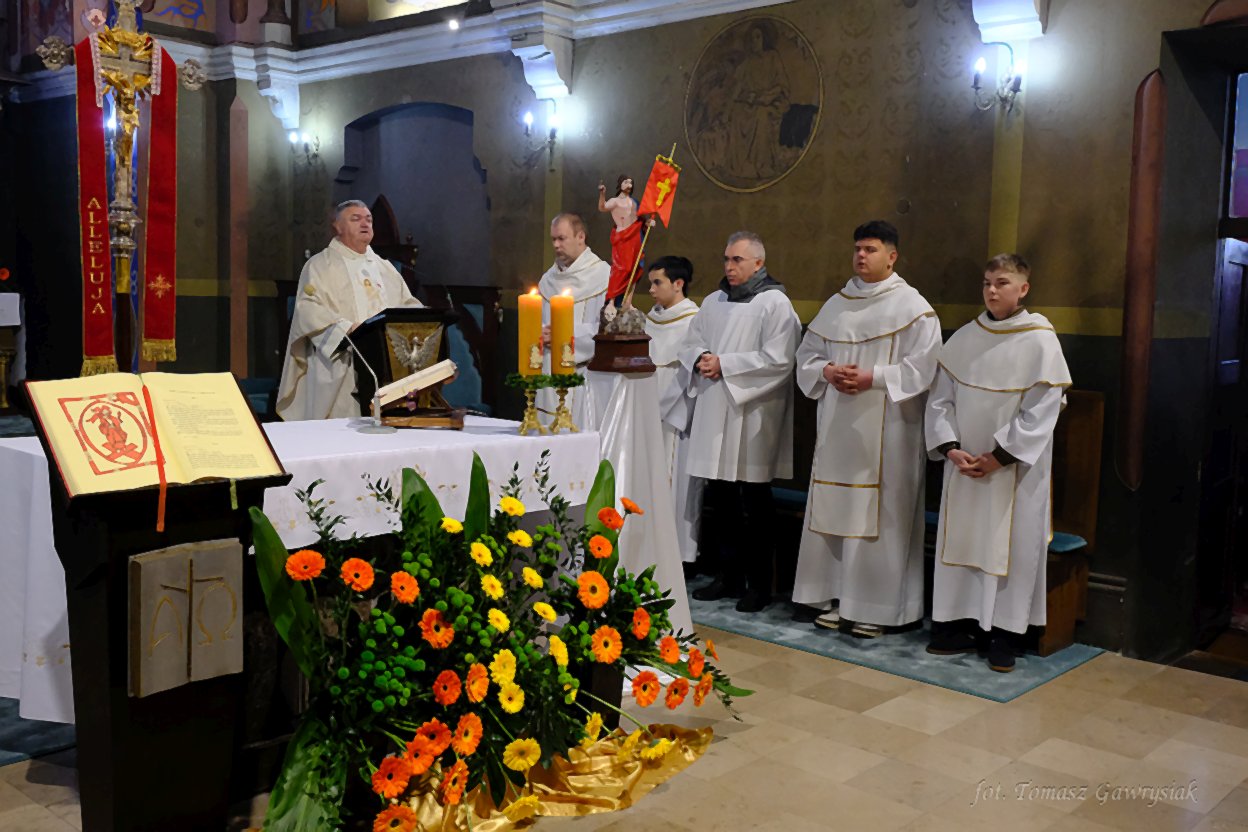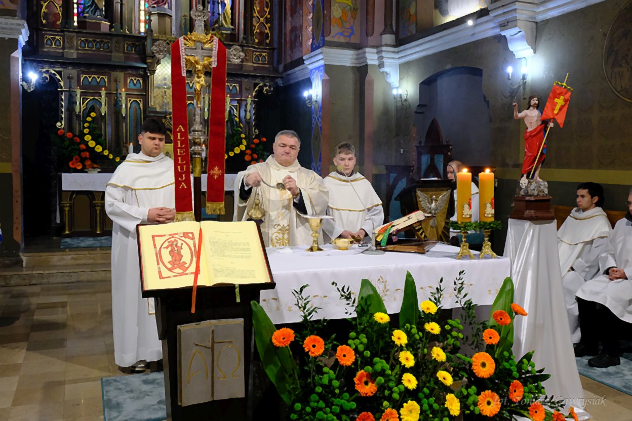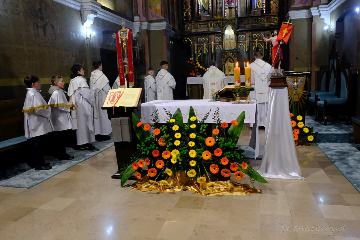 Uroczystości Niedzieli Wielkanocnej rozpoczęliśmy rezurekcją a następnie mszą świętą.