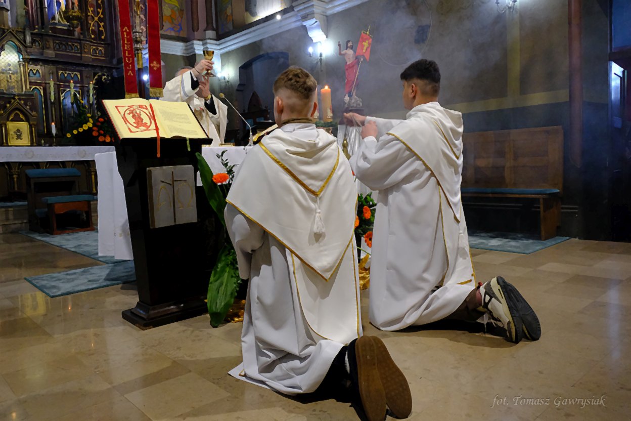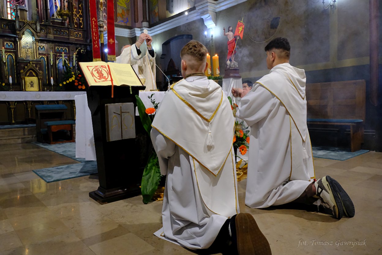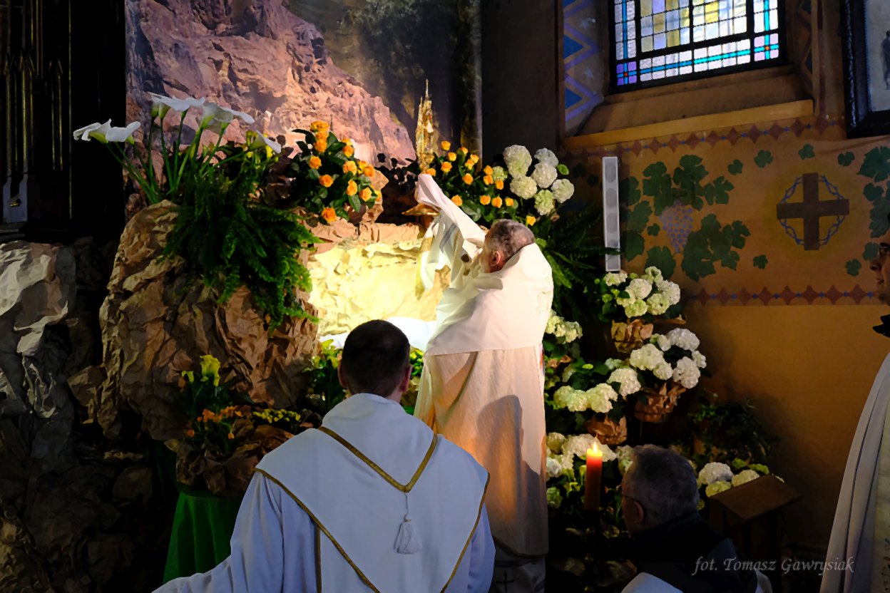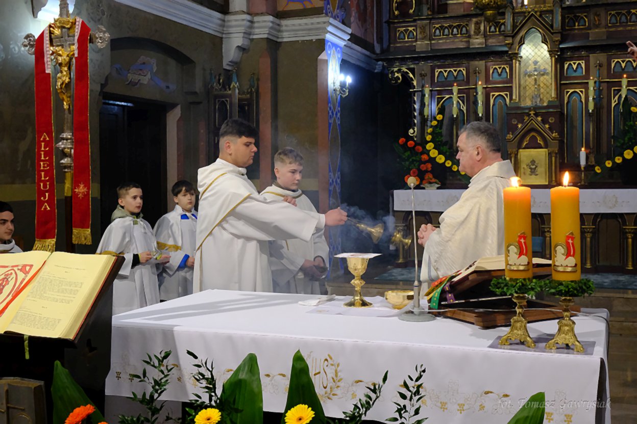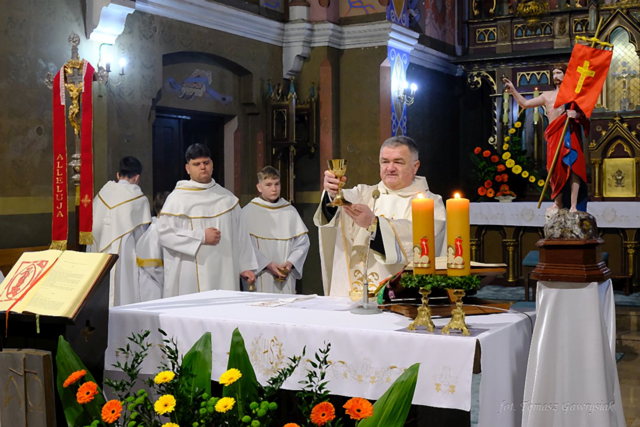 Uroczystości Niedzieli Wielkanocnej rozpoczęliśmy rezurekcją a następnie mszą świętą.